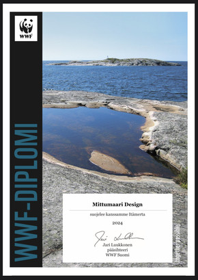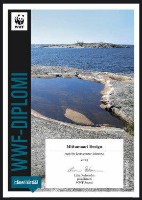Vuodesta 2023 lähtien jokaisesta myydystä Mittumaari Design tuotteesta on lahjoitettu yksi euro WWF Suomen Itämeren suojeluohjelman tueksi.